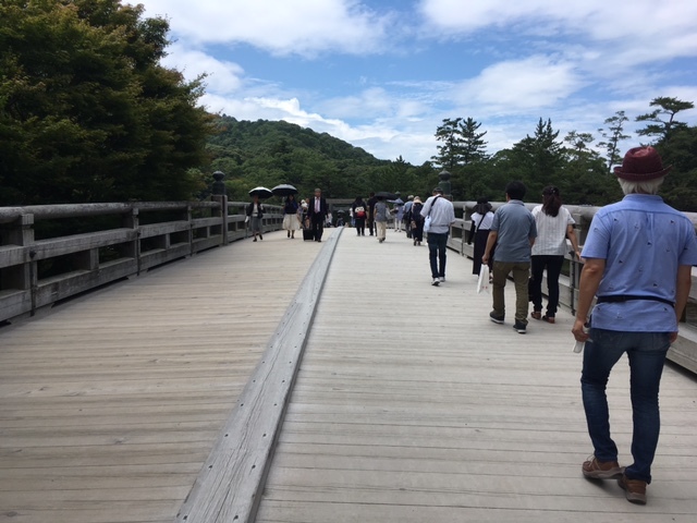 橋の真ん中にも境界があって、外宮は左通行、内宮は右側通行だそうです。