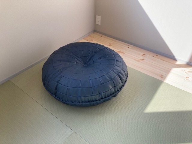 リビングは大きなソファは無くて、クッションや1人用の座椅子だけにします。