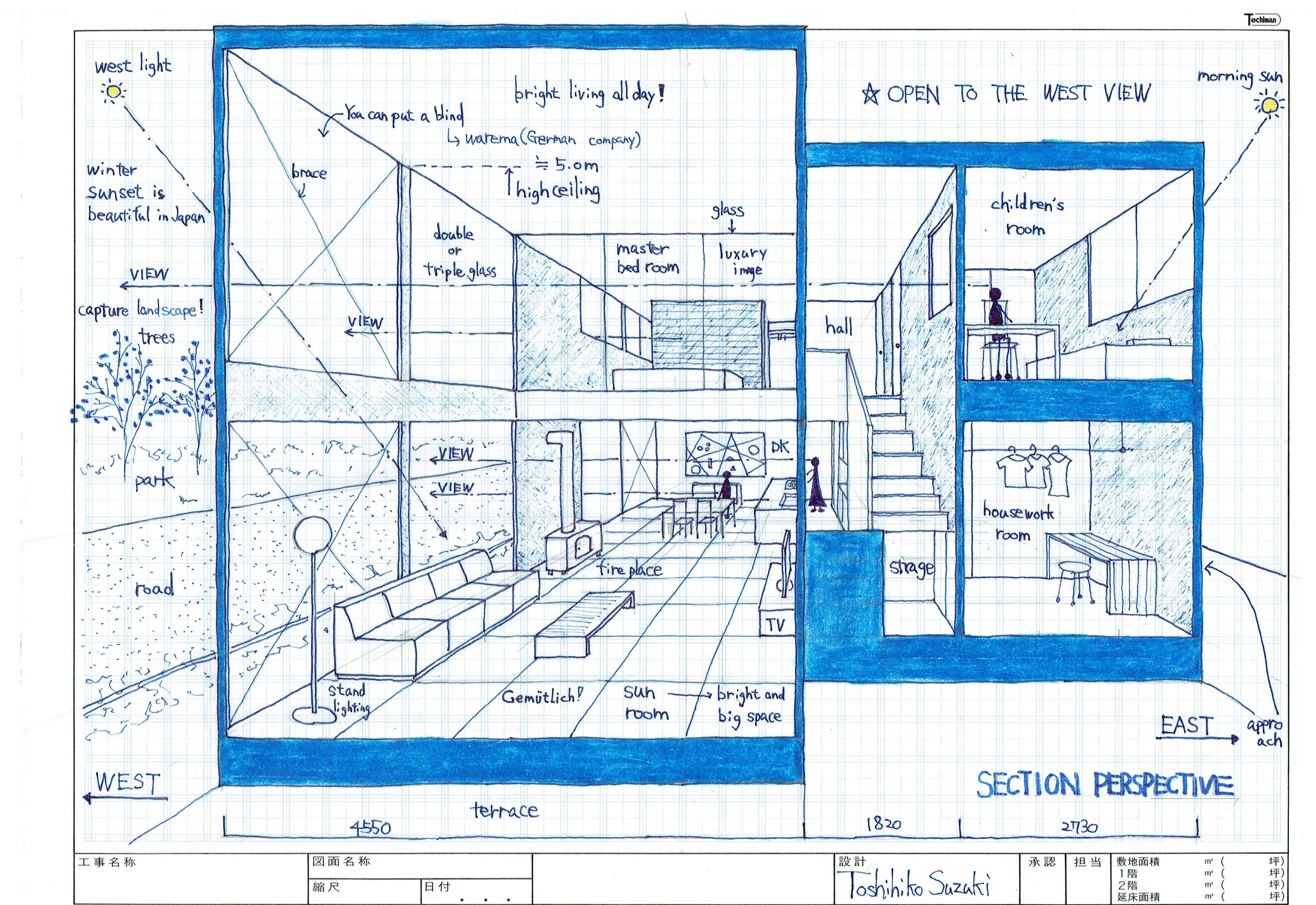 ドイツ人のご主人が最初の手書きドローイングをクリアファイルに入れて、