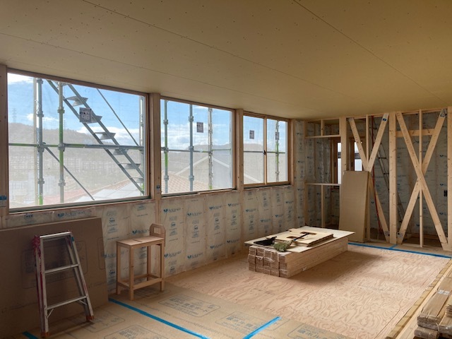 大工さんと監督さんが現場で製作中。晴れで良かった。