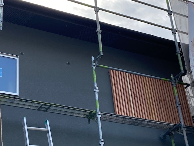 ダークグレーの外壁と対比されて良い仕上がりになってきた。