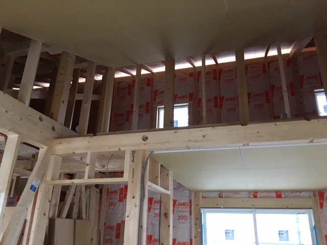 梁の高さをここだけ極力下げて少しでもゆったり出来るように構造検討の段階から調整してきたものです。