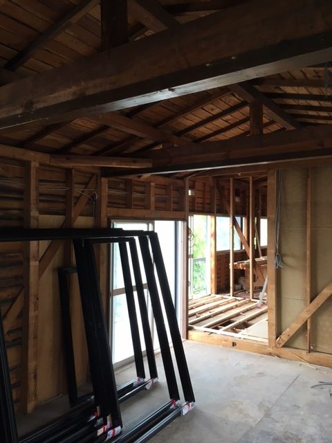 宝塚のリノべは構造補強もほぼ終えてサッシが付きました。