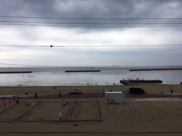帰りの須磨の海には夏前というのもあって人もちらほらと。
