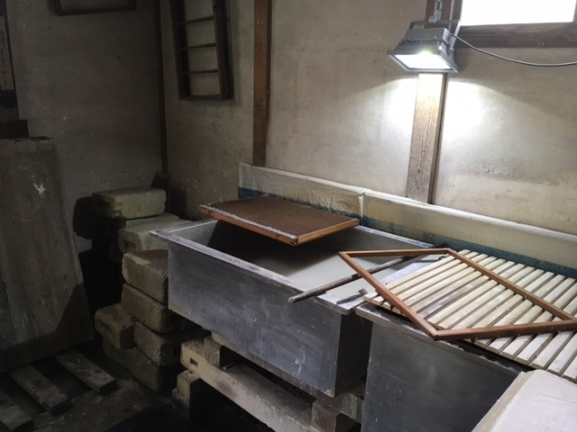 名塩のリノベーションに使えそうな素材探しに、地元の名塩和紙を製作している工房へ。