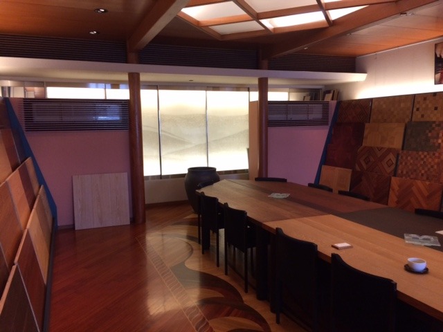 木材の見学と勉強に昭和洋樽さんのショールームに行きました。
